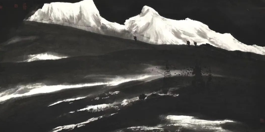 本次展览现场展出的100余幅作品,创作时间集中在近十年之间,主要有四种题材构成。一是高原风情,其以西部家乡壮美山水为母题,把祖国西部那种壮美、苍茫、阔达的意象,通过水墨的特性转化为一种希望和生机,使人领会到“天地有大美而不言”的古老启示。二是水墨造化,其以水墨与宣纸碰撞的肆意变化来表现大自然的混沌、幻化、雄奇,达到大象无形的视壮——不见物似又生万物。三是走读山河,是其在写生过程中,将生发在大自然的感动与笔墨色彩、个人审美三者结合的产物,也是传统笔墨与自然山川转化的生动场景。四是风晴雨雪,源于其作为一位西北人对雪的情感,探索以笔墨语言来阐释来源于天气变幻的万象包罗。