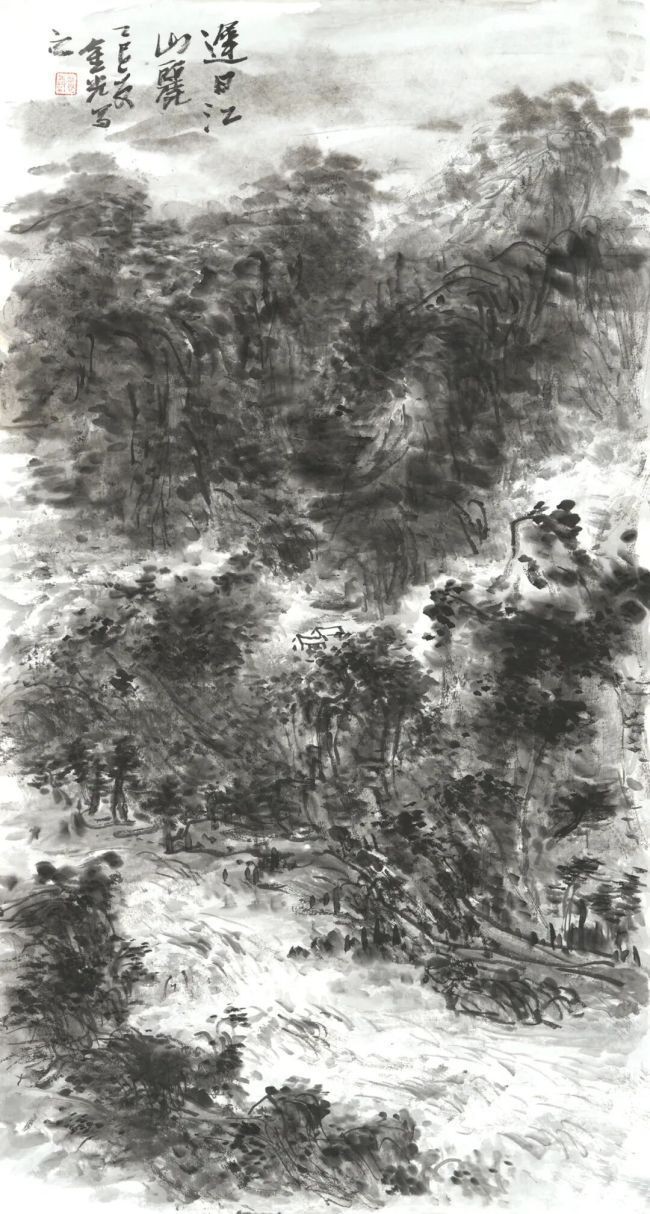 与之形成跨越媒介共鸣的,是当代草书领军人物吕金光教授。他凭借对晚明书风的创造性转化,形成了极具个人特色的狂草风格,其作品线条跌宕起伏,墨法变幻莫测,被誉为记录创作瞬间生命状态的“心电图”。尤为引人注目的是,吕金光近年来悄然涉足山水画创作,其作品以强烈的书写性笔意入画,将倪瓒的简淡与黄宾虹的浑厚融为一体,于尺幅之间营造出“吞吐大荒”的博大气象,实践着“以书入画”的艺术正道。