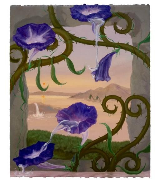以“花”的艺术为素材构成万花筒的花花世界,便是此次展览对于人类情感原始认知的多元表达。丰富的颜色、迷人的气息、瞬息的花期,这些都糅合成花朵美好外在下的感性与忧愁,艺术家将自我意识中的花转译成艺术语言唤醒观看者对生、死、情、爱的感知,以小见大构成更为丰富宏观的共情亦或反思。这一次,我们缩小了传达视角,聚焦在最为平实且日常的表意对象上,旨在以缤纷的话语唤起纯真的情与感。身处创造象征、创造需求、创造认知的快消时代,万花筒更像一个艺术的楔子,固定住记忆中最美的一环,联结原始之美与新生之爱。七位不同文化背景、不同方法论调的艺术家借花传情,以绘画、版画、摄影、装置等多样的创作形式,回溯艺术家对本真情感的追寻与理想,呈现纷繁万花景象。