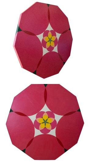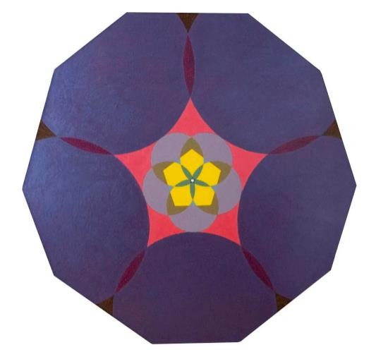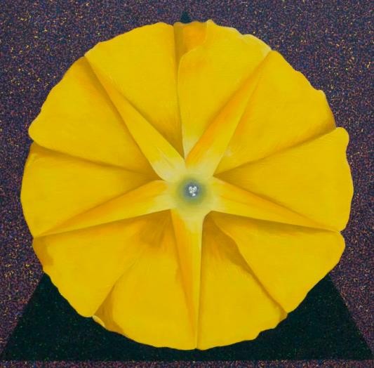 如道如易,一生万物。溯源而上,绘画的开始是一厾点、一根线、一张面。两点一线,三线一面,互为表里,钩沉经典图像,化繁就简,人情世故与诸神恩怨成为几何图形的交织错落及冷眼相望。在冷寂勃发的思绪里,向天的喇叭花直如张弓号角,直面躁动不安,碾作深渊中冥冥之眼。冷静得过于理性,易板结成程式化的代言。何不在闹中取静,循序渐进而花自飘零水自流,迎向元形元色的自诉,集腋成裘,反观自照?那面圆的镜子,是个闭合的世界。此时,点与线相互阻隔牵制,面面相觑,又面面相生。如尘如沙,一沙一世界,缘起。
