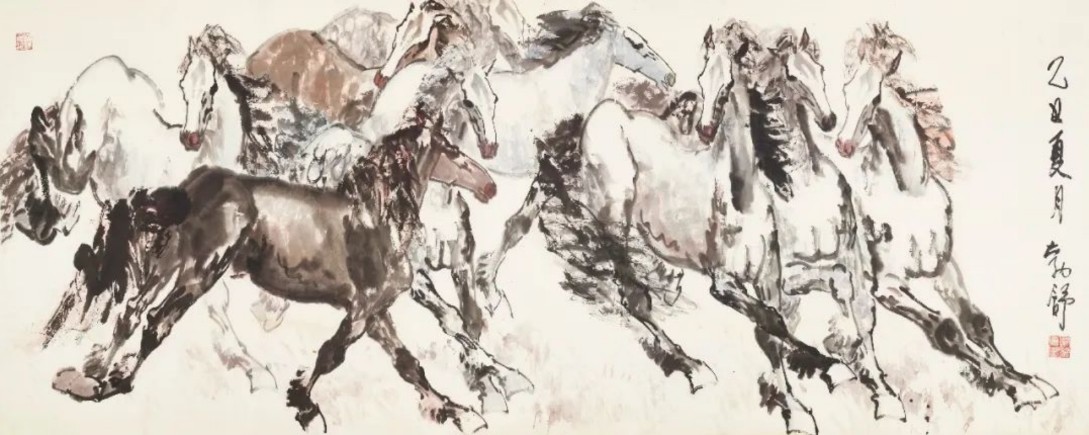 坚持传统、锐意创新、人民至上、同步时代是先生的实践基础。理论上他继承经典,延续血脉,提升创作实践的人文精神。实践中他放眼于东西方,神会于古今,是中国风格、中国气派、中国表述、中国传达。从先生的作品中,我们能感到其内在的精神力量,先生仿佛站在伟大的时代潮头之上,追寻民族血脉之源,弘扬天地精神,拓展当代审美的博大雄浑、深邃幽远的境界。