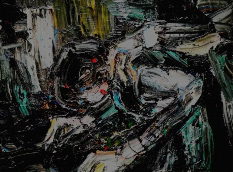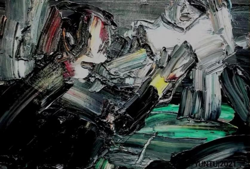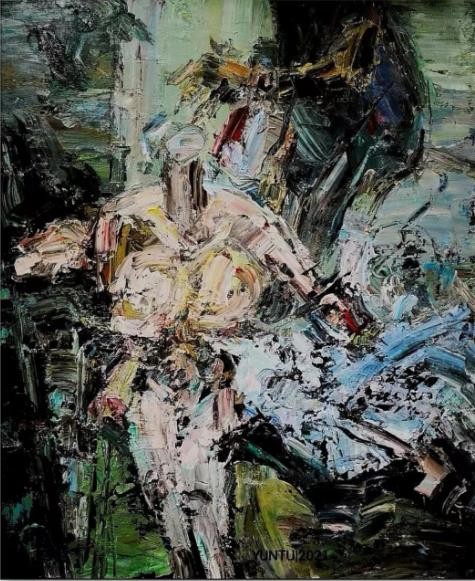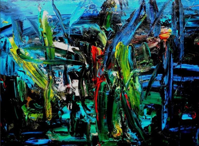 他的作品大多介于抽象与具象之间,以自我主观意识为表现手法直指艺术本源,充溢着意识流绘画的原生力量和灵性。