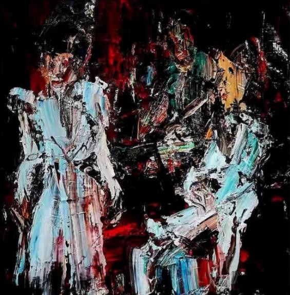 介于作者私人化的审美理想和对人性的迂回观察,他善于探究人性里无法回避的那些本质:良知、动荡、贪婪、虚伪、恐惧、昂扬、安宁等问题。用利落的、畅快的、雕塑般的、刺激的、沉郁的色块和笔触,表现现实精神。