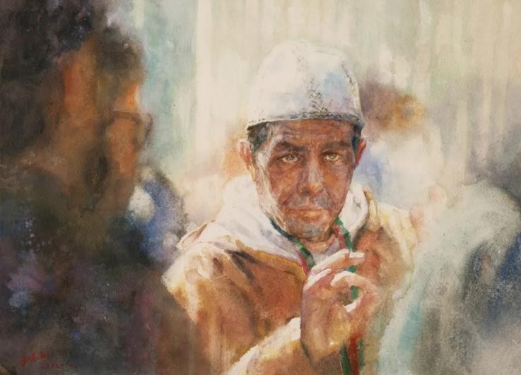 长寿这些年一直沉迷在自己的艺术创作中,这次展览让我们可以全面地看到他近年来的作品。感觉他思路明确,清楚自己要研究的问题,逐渐积累了经验,这些实践经验无论从何种角度来说都会为他今后艺术上的发展奠定坚实基础。这也是他近几年艺术创造的重要收获,难能可贵的是他始终坚持表达自己的生活情感以及他对周边社会关系的态度,这种态度甚至成为他的一种生存哲学,也正因如此,他的艺术创造不拘泥于陈规,有着鲜活的生命力。艺术的最高使命是“传情达意”,长寿认真地把心灵凝练成画作,并以同样的认真赋予画作心灵。他把对自然、社会状况的思考融入到表现自然、歌颂自然之中,借此弘扬一种人文精神。长寿的作品很明确地呈现出一个自我观照的心理空间,有着鲜明的个人特点。他根据自我表达的需要,不断学习,探索相应的表现语言,始终把情感和技巧紧密联系在一起。作为一个艺术家,要创作出好的作品,是十分有必要在这方面做深入的研究。长寿在这一点上有着清醒的认识,他一直没有脱离自我由内及外的认知,从他的作品中能看出,他一直关注人在不同生存环境下呈现的精神状态,画面中的人物既是独立的个体,同时又是一个群体的代表,这种个性和共性的交集,使他的作品不仅仅是作为个体情感的诉求,而是具有集体的精神指向特征。也正是因为有这种人文情怀,才成就了他这个阶段的系列作品。仅从画面直接给人带来的心理感受上看,长寿还善于营造略带神秘幽深的作品意境,其画面传达的信息反映出他无论是对水彩语言还是内心情感都有着细腻敏锐的感受力,有感而发是他创作的立足点。