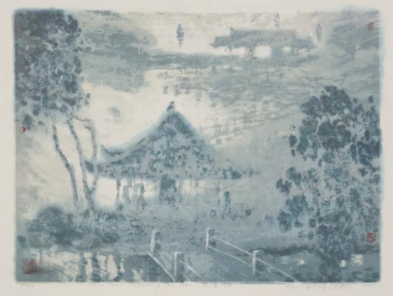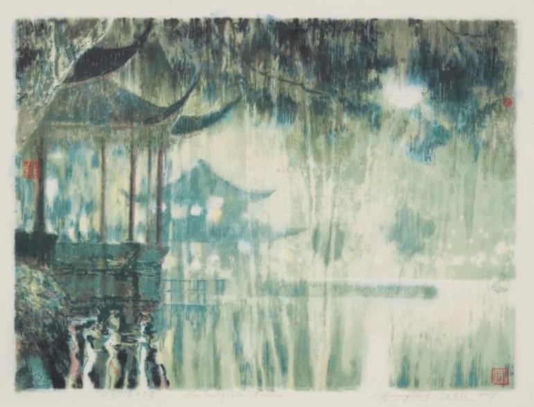 陈聿强与版画结缘,始于中学时代自学木刻,此后的几十年他在版画领域广泛涉猎,尝试凹版、凸版、油印、水印多种技法,为他日后丝网版画(孔版)的探素奠定了宽厚的基础。1981年《西湖之夜》的诞生,是陈聿强艺术途程的转折点,他苦苦探素,于设备简陋、工艺落后的情况下,攻克一道道技术难关,创作出一批脍炙人口的作品。其水印版画与我国油印丝网版画一起,在艰苦拼搏中走向成熟,引起了国际版坛的注目。