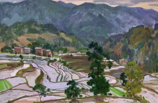 他们皆是六十出头的资深艺术家、教授,在走过大半段人生的时刻,幡然醒悟,从烦琐的事务中解脱出来,一心奔赴乡村、田野、大山、河谷,用画笔与自然对话,从自然中寻找心灵的对应点,探究艺术的真谛。从他们海量的写生作品中我们不仅看到学院派深厚的功底,也看到质朴而真诚的初心!因为写生作品最能留住自然瞬息之变化,同时也能阐发艺术家自我纯粹的真情实感。虽然他们三位在具体的艺术语言和个性上不尽相同,但大的观念和方法是一致的,这才使他们走到一起,成为志同道合、相互默契和照应的自然组合。尽管他们也参加一些更大型的全国性写生活动,但他们还是更愿意自己约定外出定点写生,经常是说走就走,全凭激情,而且装备专业而精良,大有与时间赛跑,在有生之年画遍大江南北、征战天下之勇气!
