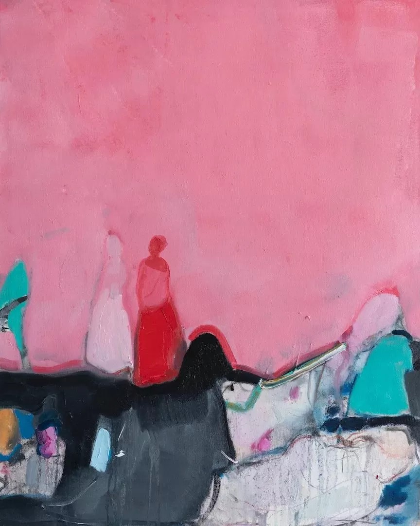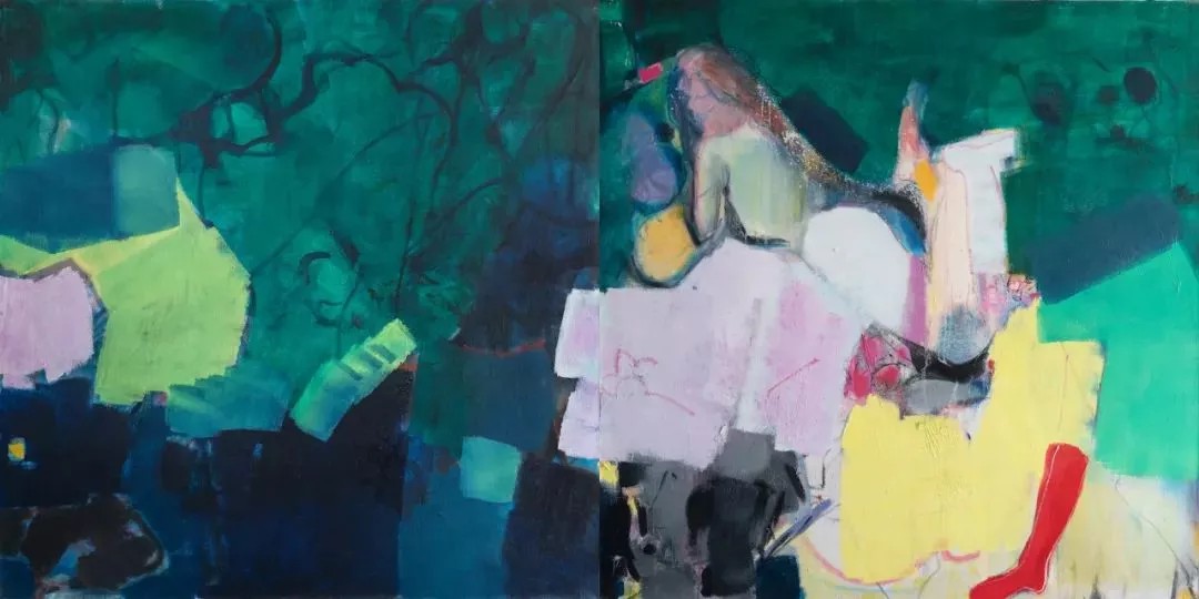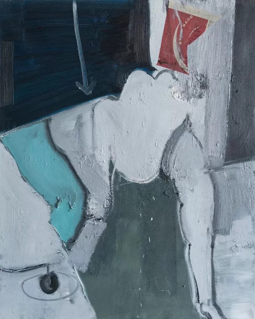 我以人的身体作为人的精神的载体,并将面孔被刻意隐去,甚至扭曲,以突出身体的整体动作的意向。感受凝结在人体的姿态之中,凝结在一笔一划地制造冲突与化解冲突的语言之中。她们或站立、或倒立、或飞翔、或挣扎,呈现出各种难以名状的姿态,暗示人的或愉悦、或苦闷、或痛苦的精神状态。画面中的直线、直面象征着技术的力量不断压迫、撞击着她们,以此表达人与其所处的世界的对峙的关系。绘画的场景无关具体现实,我只是将人体与其所处的世界做了嫁接,人成为山,山也成为人。他们的连接构造的不是关乎美的形式,而是一种关乎矛盾与痛苦的隐喻。