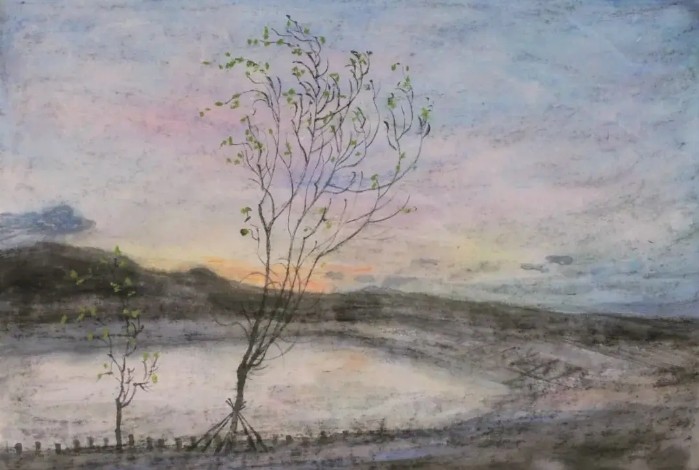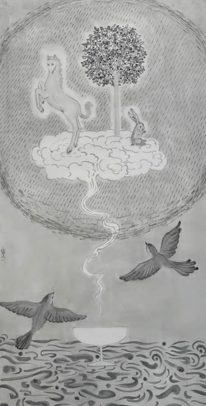 展览以《行走在西部》、《礼赞大地》、《旅行日记》、《观象》、《万物融生》等系列为主线,每幅作品皆如心镜生发,映照出创作者与天地万物对话的痕迹。《行走在西部》以苍茫笔意勾勒出人与原野的相望,在跋涉的旅途中叩问生命的重量;《礼赞大地》则以饱满的色彩与肌理歌颂土壤、风物与生命本身的丰饶,表达对自然永恒的敬畏;《万物融生》试图消解物我界限,在笔墨交融间传递一种共生共荣的宏观意识;而《观象》系列则更趋内省,将外部生物转化为心象的寓言,隐喻观世界亦为观自我。
