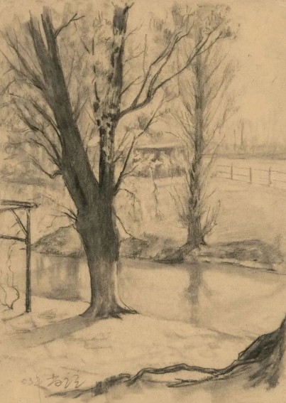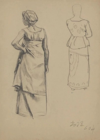靳尚谊先生高度重视油画艺术的造型基础,尤为重视素描基本功训练。他认为一个艺术家创作水平的高低取决于造型能力,素描即是创作能力的基础,同时精湛的素描也是风格创新的探索基点。靳尚谊先生的早期素描主要受徐悲鸿引入的法国素描体系和马克西莫夫带来的俄罗斯契斯恰科夫素描体系的双重影响。1955 年,他进入马克西莫夫的油画训练班,第一次全面理解了西方素描造型体系的特质,其后艰辛探索近20年方得心应手。改革开放后,他仍身体力行,从古典的作品和造型出发进行现代性和当代性的探索,倡导现代绘画与现代精神。