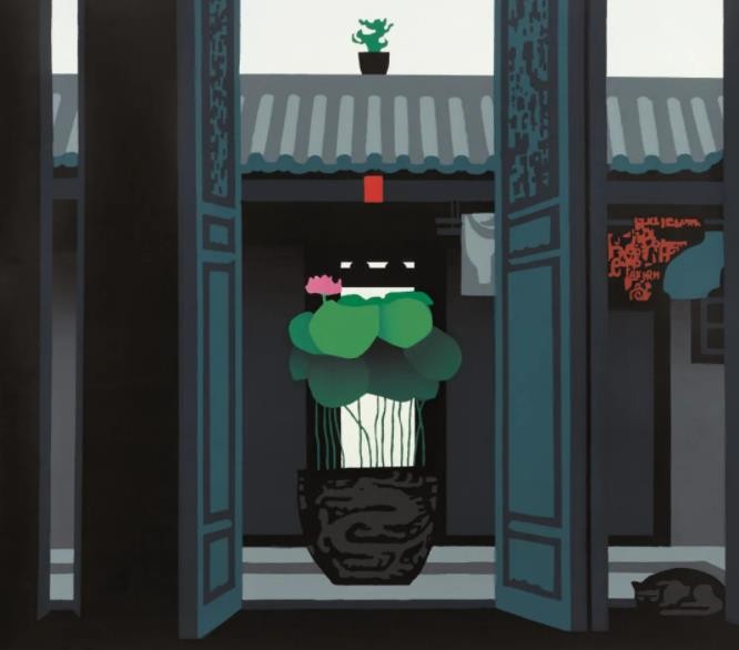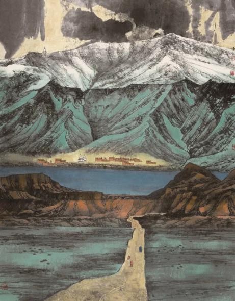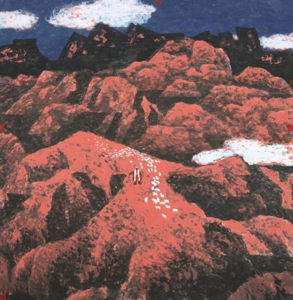 肖映川是做版画出身的,他的版画用色大胆、热烈,浓墨重彩中张扬着他对生活的热爱。然而,这些颜色一点也不突兀,在一个热爱生活的人的心里,天就该是这般蓝,夕阳就该是黄灿灿的,土地就该是赭红色——这些都是肖映川一步一脚印,实实在在地、厚厚重重地踩在生活道路上的每一刻的感触。多年的版画经历让肖映川的水墨画多了独特新颖的视角,在水墨画中融入了版画的硬边语言和黑白处理,同时格局横正, 平正凝注,简洁大气,让画面柔中带刚,气韵生动,全是匠心。肖映川的画中,你不仅能切切实实地感受到他对土地、对山水、对人情、对生活的热爱,同时还能感受到他的灵气和视野。