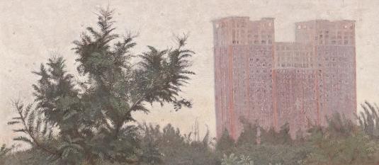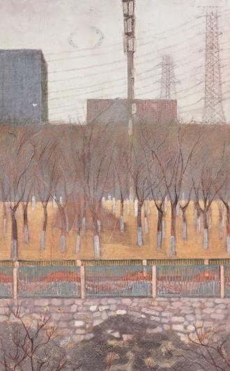 正如李昊所言:“胡昌茕的这一批作品在不熟悉他的观众眼里很可能就是一些单纯的风景画。谁也不能阻止观众这样去看待,因为它们确乎只是临窗所见,平淡无奇。但是只有理解它们对于胡昌茕创作的转变以及自我救赎的意味,才能对画面异质于其他风景画之处有所敏悟。相对于之前那些画面晦暗、色彩忧郁、标题费解、悲观主义色彩浓郁的作品,这些画像是阳光的丝缕照入困室,它们对于作者的自救意味在画面上隐隐闪现,默默沉潜在清晰的平凡之下。标题亦不再重滞如前。是的,彻底地悬置理念,放手与读者,任由绘画和单纯物象的力量去雕刻遥远的思想残影,清晰多于悲观是好的。”