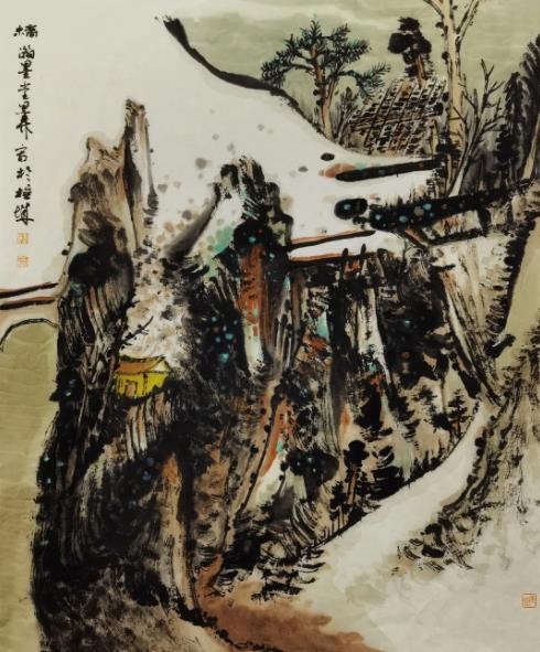 墨升是我的忘年交,他自小研习艺术,于国画、书法、纂刻、雕刻、辨石等领域皆有建树,师从者皆行业大家。其人忠厚豁达,赤心如初,屡获嘉奖,不骄不躁;其艺根基扎实,博采众长,兼容并蓄,自成天趣。我与他曾在于山堂举办过“老根写字墨升画画”的展览,得到大家的好评。墨升的创作态度严肃认真,技法娴熟全面,他有格调有灵性,能感受到生活中的点点滴滴,比如:他画小小动物,很有乡土气息,尤是所画金鱼栩栩如生;他的山水画更有特色,他是南方画家却画北方的山,陡峭凌耸,大气磅礴,引人注目。
