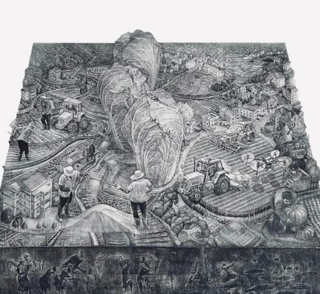 踔厉奋发的时代精神不断激发艺术家的创作激情。我省画院系统集中了大量优秀的美术创作人才,既是美术创作的主力军,又是推出优秀美术作品的阵地,更承担着继承和发展民族美术事业、以美术作品弘扬激昂的时代精神、讴歌社会主义伟大建设成就的重任,广大美术工作者围绕党的十九大以来湖北省全面推进乡村振兴战略所取得的丰硕成果,深入生活、扎根人民,用视觉图像讲好新时代的乡村故事,既有对产业兴旺、生活富裕的美好乡村的全景式展现,也有对生态宜居、美丽乡村的如画描绘,又有对文明乡村、善治乡村的娓娓讲述。本届双年展的参展作品包括全省画院和相关文旅局征集评选的优秀作品、特邀知名艺术家作品、湖北省美术院“春雨工程”邀约新疆博州艺术家作品、以及“乡村振兴——美丽乡村主题美术创作培训班”专题新创作品等,共计120余件。这些包括中国画、油画、版画、雕塑、水彩、漆画等不同门类的艺术精品,将全面而生动地展示出美术工作者们一如既往地沿着党领导的文艺发展道路砥砺前行、厚植乡村文化底蕴、挖掘乡村历史文化资源,他们以丹青妙笔绘就的新时代美丽乡村的壮丽画卷——用多样的艺术之美铺展开的一卷卷具有荆楚特色的当代人民的“富春山居图”!