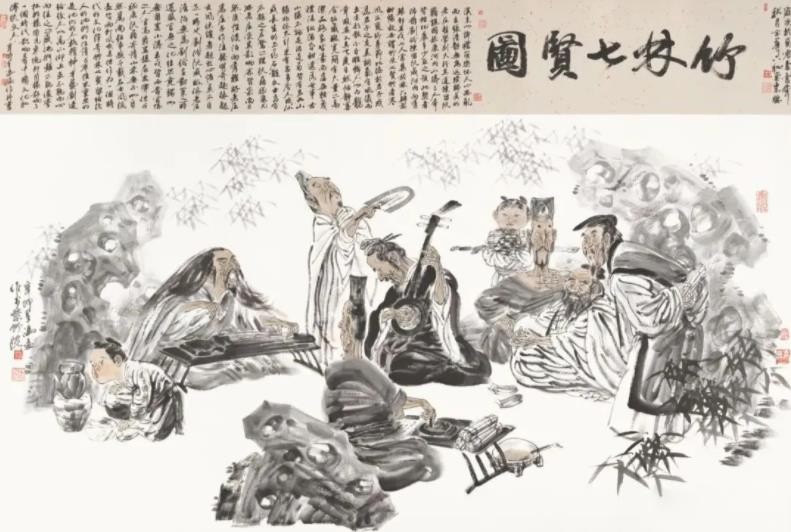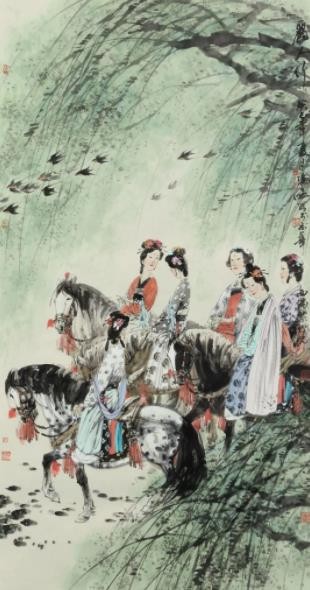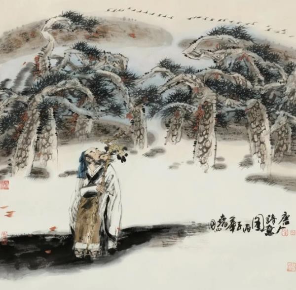 如果说是秦汉文化濡我以刚健正大的底蕴、唐宋文化沐我以热烈丰盈的气质,那么近现代文化以人为本、取精用宏的创作理念,则导引我自觉跋涉在笔墨追随时代、攀援高山的艰辛道途之中。我将研修学习的体悟转化于不同形制的肖像、故实、诗意绘画和书法作品中,以一个文化传承者的学人身份,承担一份历史的责任。