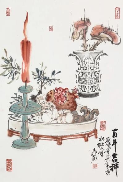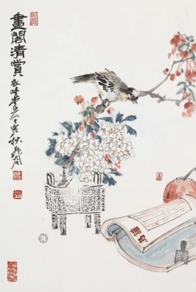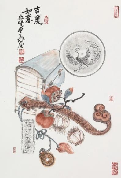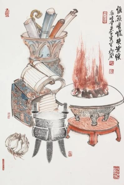 而晁谷恰恰是在“至诚”二字上,鲜有可比肩者。所谓“至诚”,一是表达的真诚,所画即所想,不是为了迎合某人或市场,将自己的所知、所思、所感,灌注到每一幅画作之中,绝不含糊。二是行为的至诚,每日笔耕不辍,创作研习,未敢有自满之心,亦未敢有懈怠之意,一心求道,多种尝试,人物画、生肖画、花鸟画等等,常常有新构思、新突破。