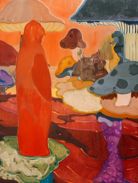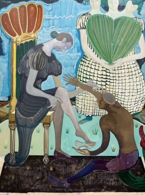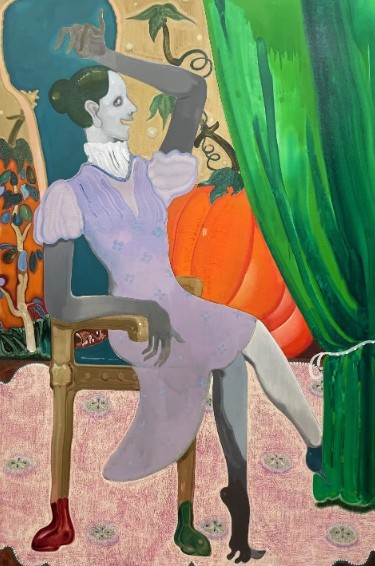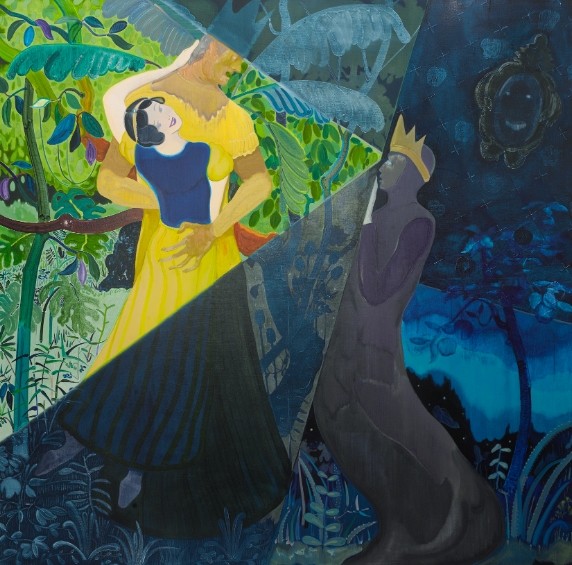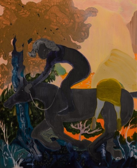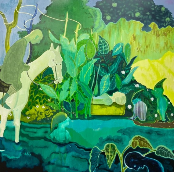 他处理色域的手法,是均质的平涂,随机采用流淌式的画布肌理。看来,被稀释的敷色是汪一作画过程中可见的享受部分,是这敷色的享受,使童话式的轻微焦虑感,摆脱叙事之累,抒情之嫌,成为一种近乎纯绘画的表达,这种表达被汪一带出羞涩的气质,介于少年的,甚至带点女性化的Fantasy之间。