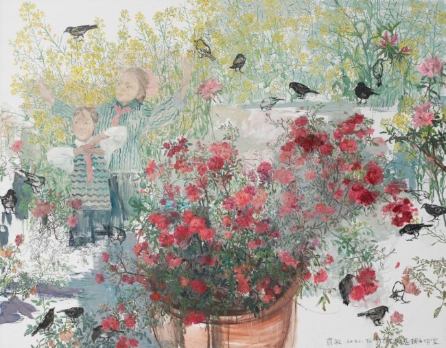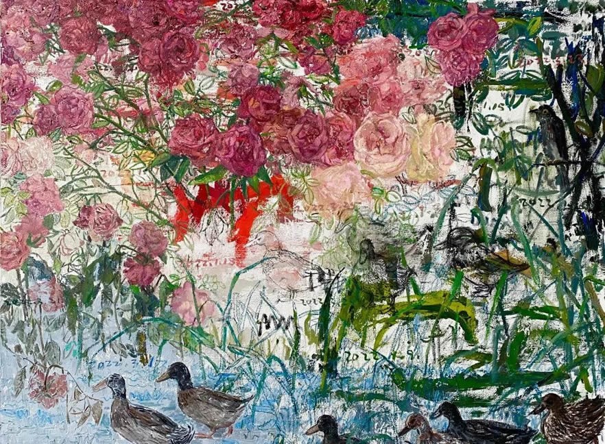 AYE 画廊将于9月28日至11月28日举办艺术家罗敏的个展“如花在野”。罗敏以表现主义的绘画手法重新演绎花鸟主题,既吸收了传统绘画中关于花卉与禽鸟的线条感、留白与诗性意境,又借鉴了西方绘画的厚涂肌理、色彩冲击与结构性光感。画面中既有悬浮的离丛玫瑰,花枝底部斜切,似静物被释归自然;也有中国线描花卉、鸟雀与蛛网的细腻描绘,打破透视秩序。《如花在野》不仅是一次跨文化的图像实验,也是对“图像何以为生”的再追问。在自然与观念、传统与当代之间,罗敏让花鸟成为文化互文的符号,同时也是观看方式变革的见证者。