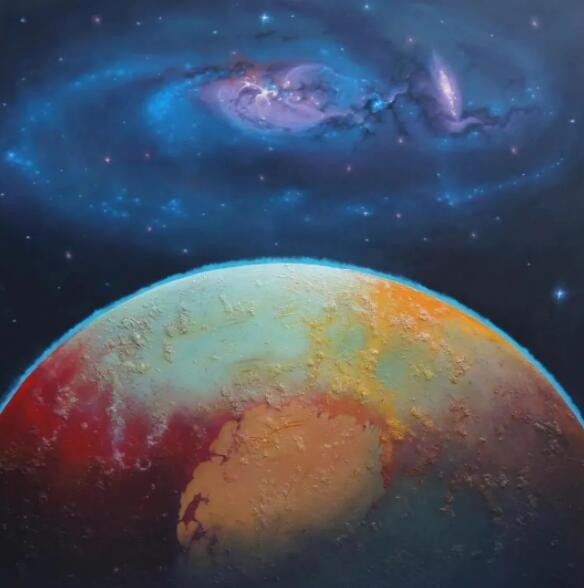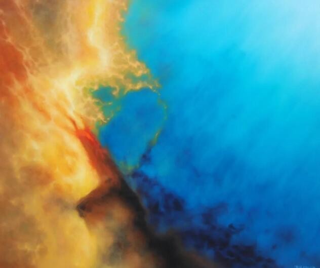 阿波,一个艺名,从认识他的那天开始,就必然从他的艺名下看见他的艺术作品。仿佛是幻觉,我不敢置信,阿波让我们进入的是另一个世界。作为地球人,我们每天都在俗世中挣扎。毋庸置疑,每一个生命的存在,都在浮生中获得生存的位置,生存的权利,生存的信仰。而作为艺术家,他们的存在是创造和发现。阿波的绘画看上去只围绕一个主题——他是如何开始对星空产生炫幻想象力的?这是艺术家的本源。跟阿波接触,感觉他始终不渝地跟着伟大的地球在旋转,他拥有自己旋转的悬浮力,即使在俗世中,也能隐同秘密的悬浮力上升而去。我找到了阿波绘画的本源了吗?是的,从尘世中升起的悬浮力将阿波牵引向了辽阔的天空。这天穹让阿波产生了原创力——这是每一个独立艺术家最为激动的时刻。正是这个世界,让阿波开始了艺术家孤独而又充满激情的画布上的探索之旅。