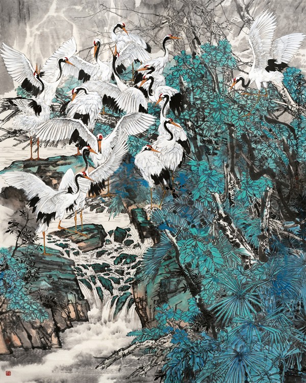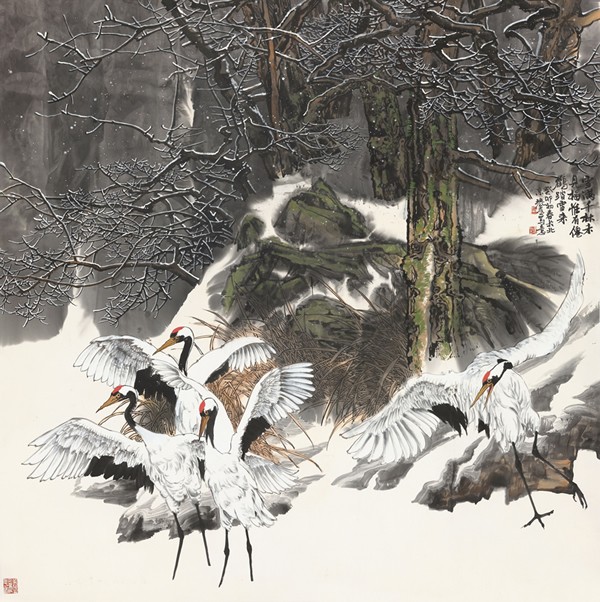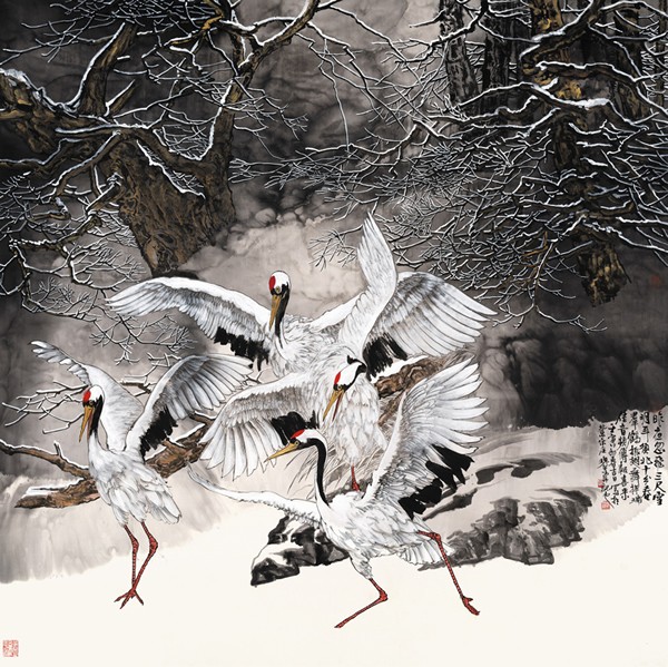 交响乐也可称为“交响诗”,画就是诗,就是文,就是心,强化综合修养,强化主观精神,是我们花鸟画家升华格调的根本途径。“晴空一鹤排云上,便引诗情到碧霄。”这心画的诗情交响正是他未来的理想高峰。