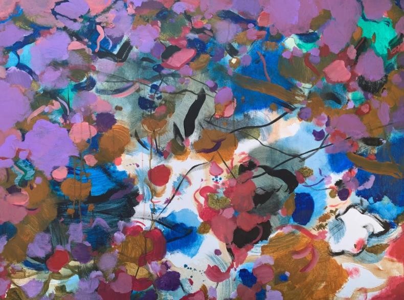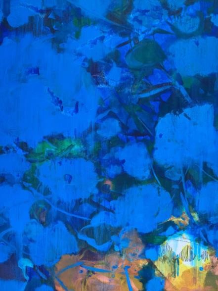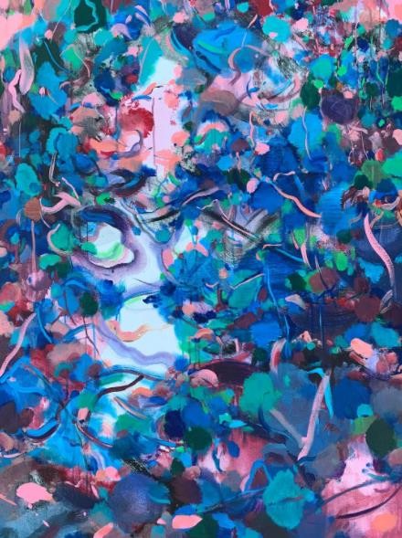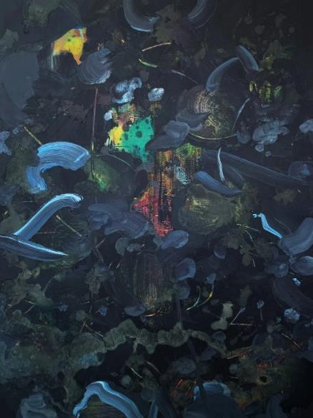 正如人类文明不断累积的繁复给予我们通感一样,思源不断选择更为璀璨的方式,可视作一种强效赋魅,即兴的、肆意的将结果与过程相联。其实观者有时需要这样的经验,一种似乎曾身入其中从结果即可被带入其全过程的体验。同时,也可以因此终结对获得途径进行经验积累的必要,一切都在在时间中游弋。另则,他创作中的消影意识在实践过程中逐渐显现,艺术家的创作过程基本可以理解为与绘画关系的对话。他喜欢将色彩自然混合,这种手法生成了磨蚀厚度的假象。