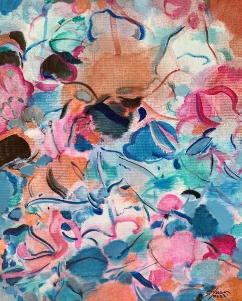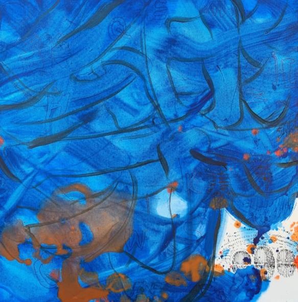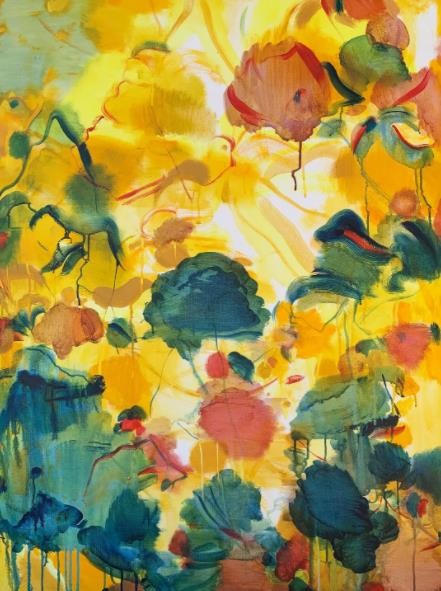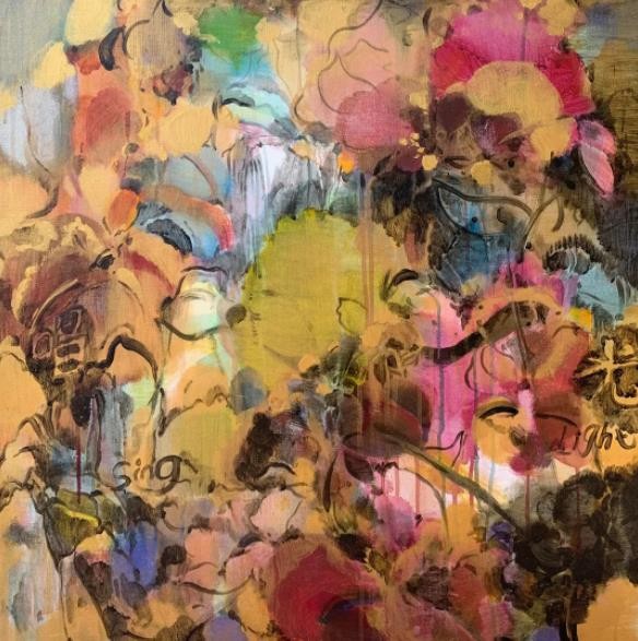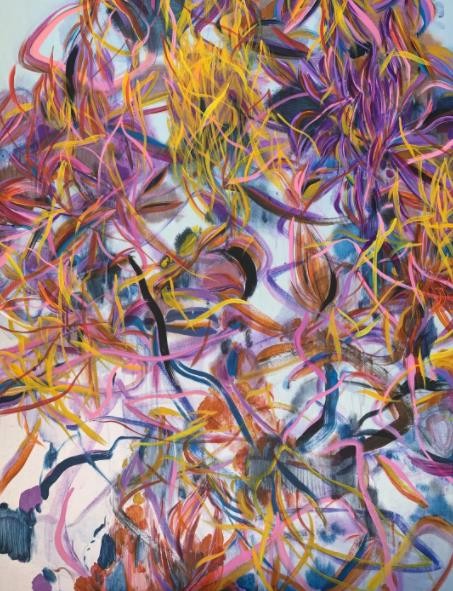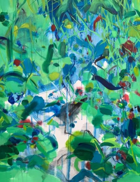 思源探索了绘画在画布上的自由、富有表现力的浇注和拖曳,尔后不断拓宽艺术表达的边界;同时,在符号、形式、形状中等建构自己的态度,有时强烈,有时面纱般的神秘,不时地流露出某种神思纵逸;其间不乏艺术家于自然中得到的超验性基因,不断透叠的斑斓是一种精神游弋的外部凝视,笔性与线性结构互为嵌入应该是艺术创作的运动和记忆,色彩既在尘世之中,又在尘世之外。