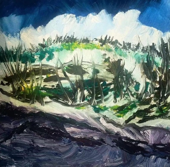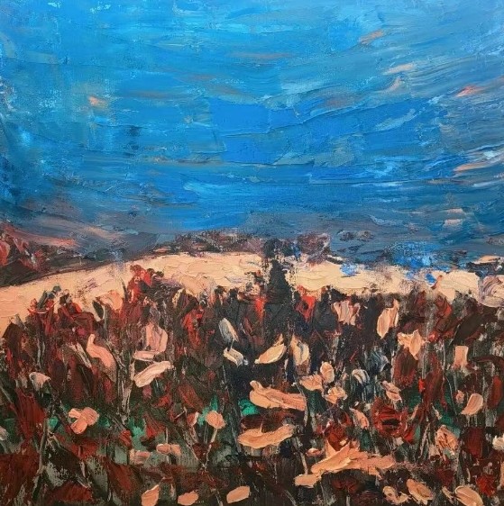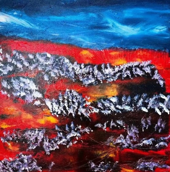 “灵魂”是什么?在海男的诗书画中,“灵魂”就是荡漾在色彩缤纷中的神秘元素,海男的绘画作品穿越了她人生的时空,她的色彩构图都在复述着生命的梦想,每一幅画作都弥漫着大地母乳般的气息,也同时演奏着自然万物的灵魂之声。正像她所言:当一颗心跳动时,烟火的熏味、尘土的杂草、栅栏上的锈红色、白云深处的闪电都是我的灵魂。从骨子里深深挚爱色彩中的诗性长旅。这次展览,是一个神秘主义者的内心独白和色彩,是一个人在时间的黑暗和光芒深处,历练自我的生命线索。海男自语着:那些无法言说的,正是你的内心秘密。迷途是长久的,幻想和现实也是长久的:在两者之间,我忽儿逃离,忽儿又公开了自己的灵魂。这次以海男诗书画构成的展览,无疑是在智能化时代脱颖而出的一场关于灵魂的,驻守和长旅。