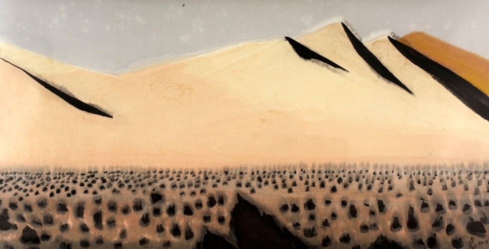 他对中国古代哲学中的玄学很感兴趣,好谈老庄,像魏晋玄学家那样“手挥五弦,目送归鸿”。庄子说的寓言他信手拈来,几句话必定说到“道”。他理解的道是浑沌,既是万物初始的状态,也是人看待世界的方式,还是事物最好的存在面目,不要有强烈的分别心,不要有太强的企图心,在作画时要顺其自然,因势成象,如人夜行,不必有清晰的设计和目标,但要蹈虚蹑影,乘除阴阳,随物宛转,与造物者游,游于无朕。他经常画第一笔时目不视笔,甚至闭上眼睛,由这不由意识控制的第一笔划破鸿蒙,然后再一生二,二生三,笔笔相生,在一片浑沌中让物象破晓。刘巨德谈的是中国艺术美学的最上乘义,意在言外,不可说不可说,能理解到他这个境界的人很少。把搞艺术看作行夜路,把艺术家视为夜行者,反对和抵抗理性与分别心对艺术浑沌之道的干扰,靠通感和潜意识与天地之道相通,在朦胧模糊的状态中抵达原初、原始的精神原乡,这使我想起了萨满。