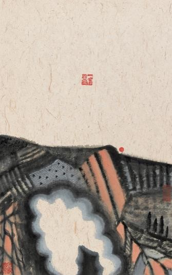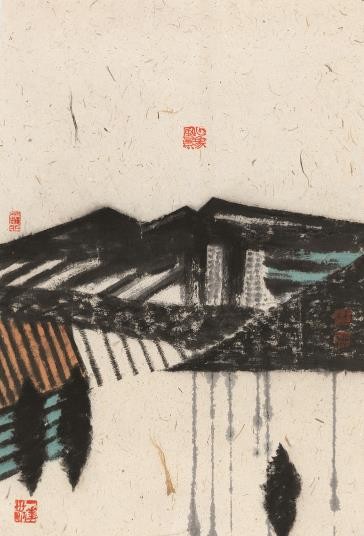 现代版画的主观形式构成以及日本浮世绘版画的平面装饰趣味无疑给杜松儒的水墨画创作带来不少启发。他的水墨山水画创作的灵感源于自然造化,却不拘泥于真实再现自然;他将不同物象的造型简约化、抽象化,以现代构成的方式重新组构点、线与色块,创造出令人耳目一新的现代水墨画的多样化图式。难能可贵的是,他血脉中的民族传统艺术基因使他恋恋不忘中国古代绘画注重意象表现与意境营造的宝贵精髓,在充分发挥水、墨、色的材料特性的同时不因循传统固有的笔墨程式,或以淡墨挥洒烟雨之迷濛,或用浓墨晕染丛林之苍茫,或施花青笼罩远山之青翠,墨色交融、形色组构而成内心的意象与幽深的意境。传统绘画的现代化之特质在某种程度上就是形式创新、语言求变。但艺术创作的方式贵在真诚自然、发自内心,而非刻意的求新求变。象杜松儒这样文化视野宽广、艺贯中西、才能多样的艺术家正享有灵动善变的思维能力和融通中西的创新天赋。他在版画领域造诣颇深,又擅长水墨画,同时还拥有美术活动与展览策划、版画史论研究等方面的丰富经验。他与他在日本留学期间的导师、著名版画家黑崎彰合作编写的《世界版画史》是版画史领域的重要著作之一。