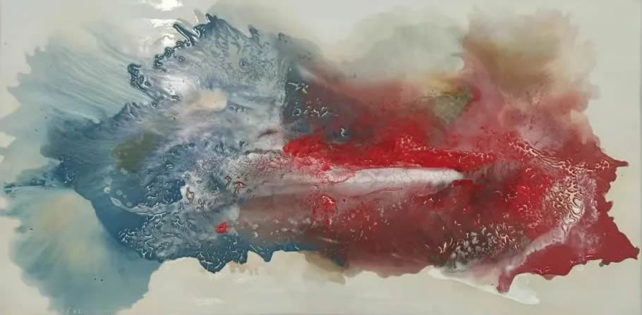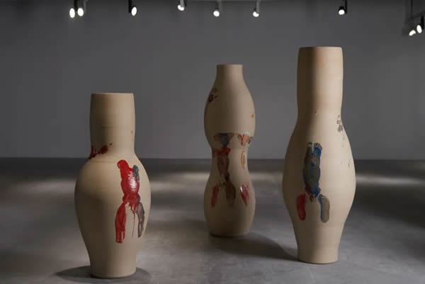 东西文化的浸淫与艺术表达的自由追求使得袁海龙始终在寻求艺术的更大突破,陶瓷成为其打开更广阔的抽象绘画表达的一个重要媒介。抛开对陶瓷所有传统概念里的想象,作为一种纯粹艺术表达的媒介,陶瓷从上个世纪以来已从丰塔纳、高更、毕加索、米罗之手落到当代艺术家的手中,在格里森·佩里、杰夫·昆斯、朱迪·芝加哥、刘建华、方力钧、蔡国强等一众艺术家的创作中不断获得技术上的解脱。和所有传统主流艺术媒介不同的是,恰恰是这一长期处于手工艺领域的陶瓷因其全世界共生性文化遗产的特质而具备不同文化对其自然而生的认同。恰恰是这一特质吸引了艺术家袁海龙,将其变为他笔下立体的画布,既结合陶瓷的釉料特质呈现耳目一新的陶瓷色彩肌理表达,又不拘一格地突破工艺局限保有写意的挥洒自如,画面时而有山河壮丽、黄河入海之势,时而似曼妙舞者轻盈优美,既有着夸张的表现又不乏诗意情怀。袁海龙将其早期的抽象绘画变成了一个可行可游的绘画之林,行走在袁海龙的瓷瓶间,绚烂的色彩结合陶瓷迷离的光泽有如穿行在一个艺术家制造的幻境。