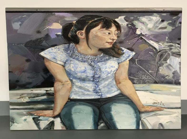 记得在美院读书的时候,我画素描就和人家不一样,总想在形式上取得些变化,为此老师说我玩“花架子”,但我不以为然,艺术有时玩玩“花架子”也不是一件坏事。在今天,作为一个成熟的艺术家,我的肖像作品更不是一般形色训练的习作或者素材,而是一种直逼对象心灵深处的肖像创作样式。近十年来,我一直在思考,如何将一般意义上的肖像作品变成一个具备当代性意义的独立创作载体?为此,我不遗余力,在画布上笔耘不辍。