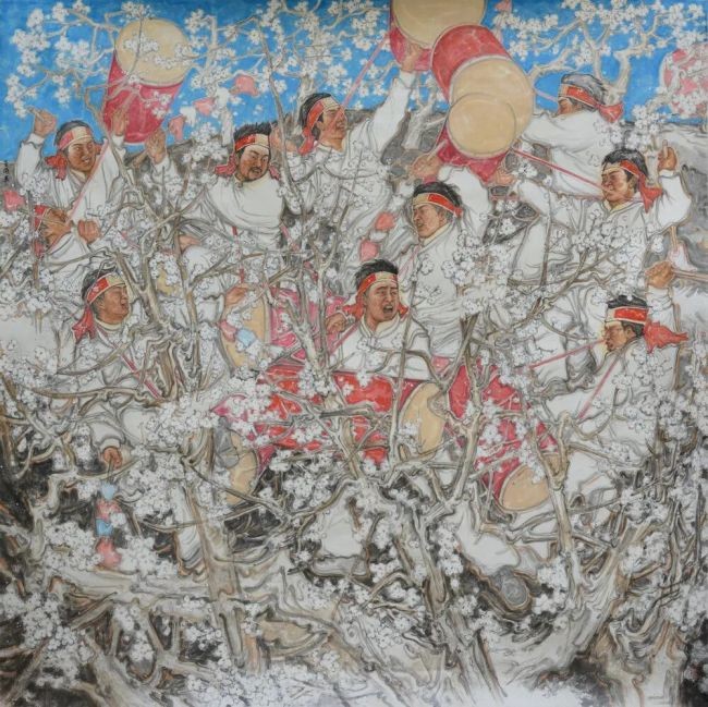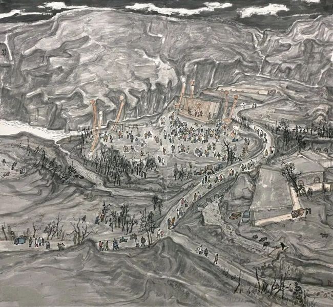乙巳冬月,由李连志、李宽、巫卫东、金长虹、郑天伦、邓天平、郭峰、刘伟、贾发军一行九人,相聚于山东美术馆,开启“水墨家园——我们的水墨·中国当代写意画展”全国巡展的第四站。此次参展画家虽年龄不同、风格各异,但在各自艺术道路上都曾受到过陈钰铭先生的影响。近年,在面对新的时代图景,他们凭借自身敏锐的洞察力、深刻的感受力和不竭之创造力,推陈出新,尝试个性化的水墨探索。纵观本次展览的作品,从描绘陇山十月、春江水暖的自然之景,到聚焦都市生活、乡野劳作的人生百态,画家们在笔墨表现、造型语言、水墨构成上进行了突破性的探索,展示出成熟且“和而不同”的创作风貌。
