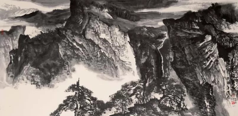 汉军先生幼习丹青,痴迷五十余载。他广为人知的另一身份是闻名全军的眼科专家,其艺术造诣与精湛医术彼此增辉。作为军旅画家的汉军先生生得器宇轩昂、为人豪爽坦诚。许是深受家乡秦巴文化和汉水文化的滋养,汉军先生的山水画用笔走线劲健老辣,呈现出正大崇高的力量气度。每每观赏他的山水画作品,无论是大幅巨制,还是盈尺小品,皆体现出一种雄浑硬朗、气势恢宏的气象,细看却又觉得凝重中流溢着澄澈、奇崛中深蕴着灵秀,其构势造境,手法繁复,给人以博大精深、气象万千之感。若没有扎实的传统功力,没有对自然物象的观察体悟,没有经年累月的勤学苦练,汉军先生又怎会在强手林立的山水画领域占有一席之地呢!