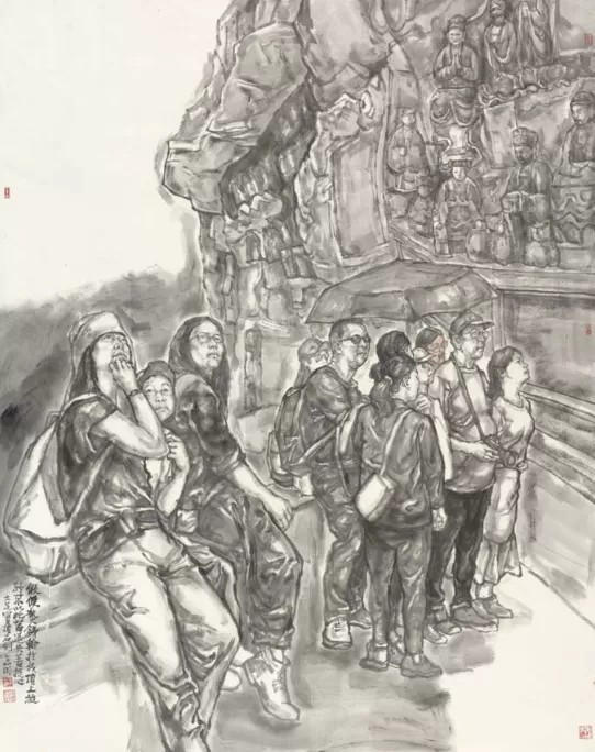 世明先生早年毕业于四川美院,留校任教不久又负笈杭州,浙江美院的深造培养了他不凡的写实功底和人物造型能力,早前他创作的一系列以近代伟人名士为主题的中国画作品,近乎完整地承袭了浙派水墨人物画的创作风貌,屡屡获奖并广受认同。因为对市井生活的热爱,近年来世明先生拓宽创作边界,他把目光转向底层大众,用独到的平民视角,准确地捕捉都市底层人民生活的日常场景,以娴熟的速写语言,看似随意却精妙的下笔,描绘了众多形神兼备的普通人物,市井风情,跃然纸上。这些彰显时代气息的作品,体现了蕴藏于艺术家内心强烈而真挚的现实主义人文情怀。