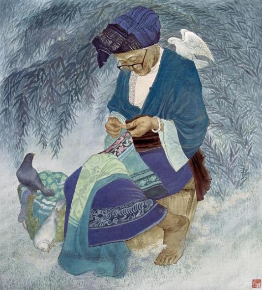 在我俩度过八十多个春秋的人生中,前四十年,是读书成长,努力学会全心全意为人民服务。曾有过奋发的激情,创作了《山里新人》《山寨教练队》《队里的喜事》等作品,但也虚掷了不少时光。幸好,我们坚守了一个画家的本分。后四十年,时逢改革开放,有了更广阔更自由的创作空间,画家更有了创作的自觉、自信。那些曾有过一定社会影响的作品,多是这个时期产生的。比如:《别母图》《掘进者》《祖国在召唤》《赶歌图》《山雀》等等。