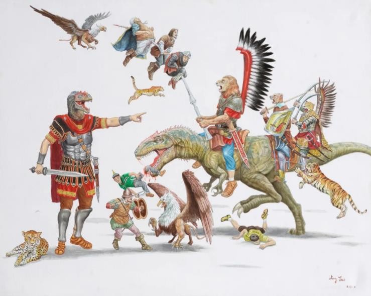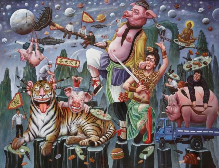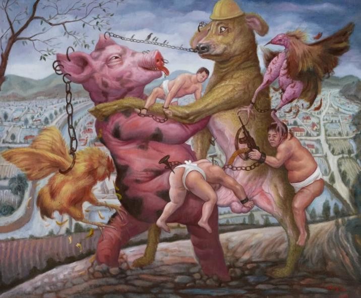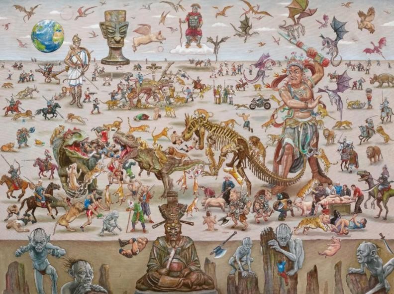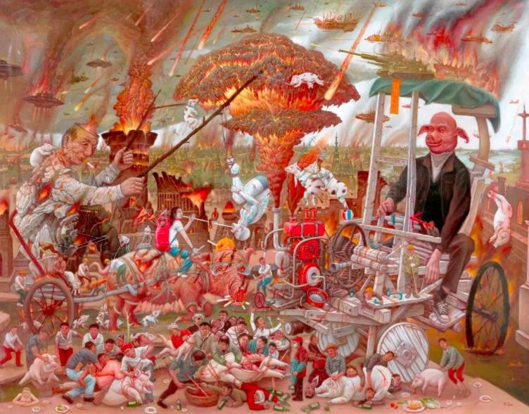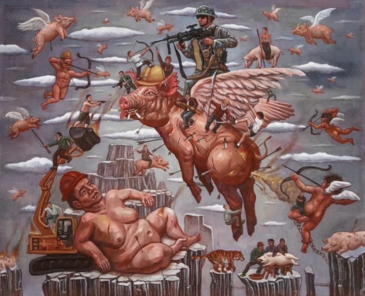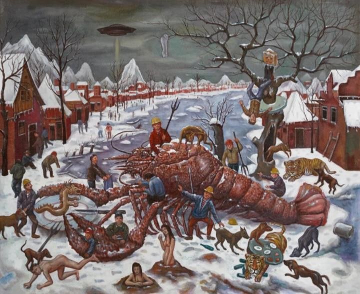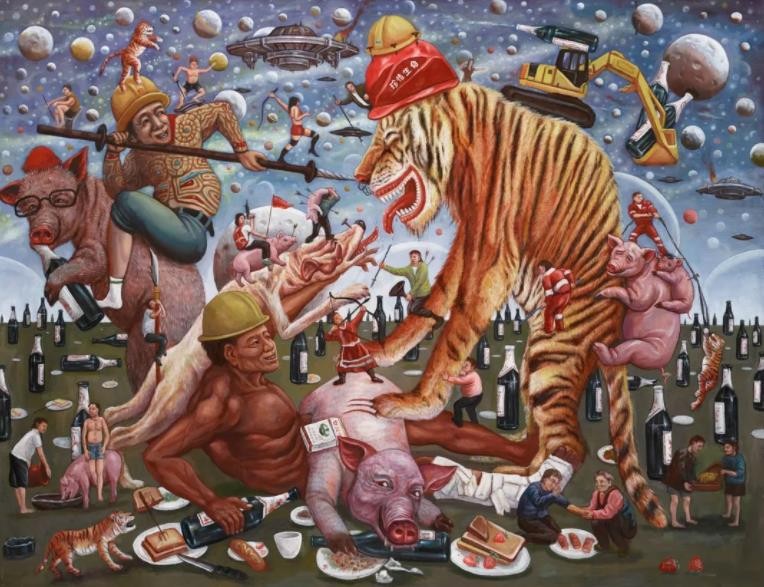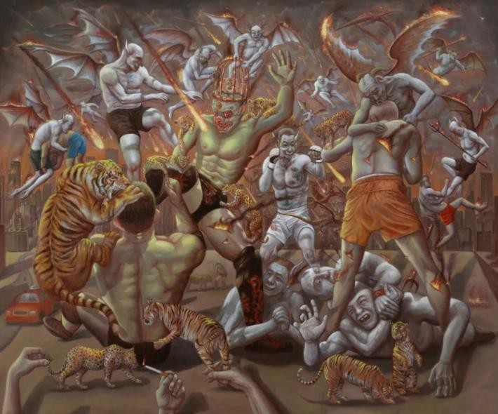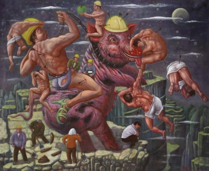 熊韬是个悲观主义者,他的画面引领我们进入一个我们似乎熟悉的现实场景,这已不是十六世纪尼德兰彼得勃鲁盖尔时代的农民情怀,这是21世纪他所生活的时代。