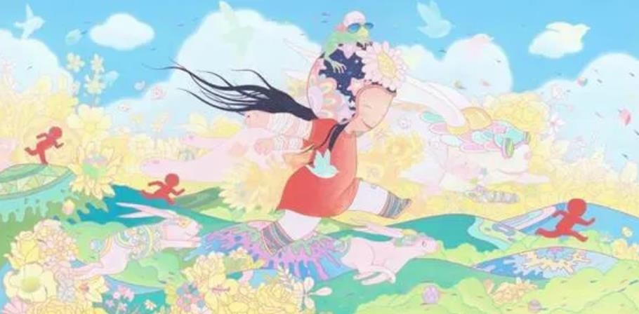 时间会抽离掉声音,抽离掉环境,甚至抽离掉故事发生时候周围的人,但是那份感受是无法磨灭的,艺术家钱仁衍将这份感受又还原到记忆的场景中去,他的作品中有很多都是在奔跑,比如那个快乐的下午,奔跑中跟随心情出现的花开,感受到春天的色彩,甚至幻想跑着跑着就飞了起来,这些充满天真又治愈的画面,将我们又带回到了那个时代,给了我们身临其境的感觉,让我们在这个快速节奏的生活中找到了一份慰藉。