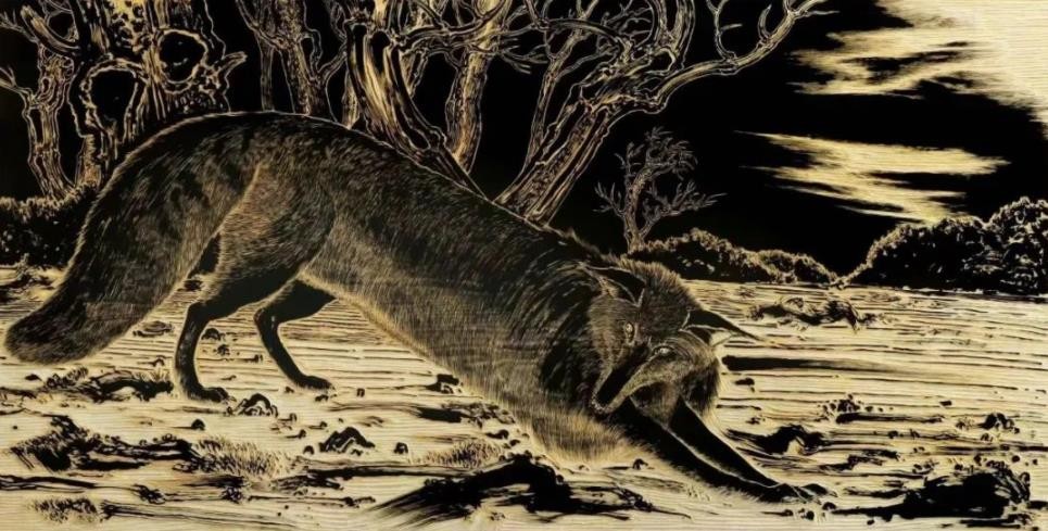 The title of the exhibition "An Infinite Journey" not only indicates the protagonist’s journey, but also metaphors the artist's creation concept. Stems from Sun Xun's generalization of his creation, his works as the imagery of the reality does not lie in a single medium, while different media can promote the enlightenment and collision of artistic expression at different levels. Except for the animation, the works of the exhibition are mainly woodcuts, which correspond to the first country that the protagonist "Xiaozhi" travels - Luocha: a nation with no history, no memory and deny flight. With its unique rigid and rough visual effects, the woodcut bears the feature of Luocha, and appropriately constructs the inner universe of the animation. The Luocha part is a clip with a strong narrative, which occupies nearly one-third of the origin animation. Audiences can appreciate the grand and sophisticated worldview behind the animation's flowing narrative while enjoying the animation and the woodcut stills.