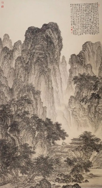 “一管之笔,拟太虚之体”(王微语),当山水从自然现实进入以画家为主体的山水创造行为,山水画便由以产生,万般景色也便凝练出丰富多样的技法语言。从魏晋山水的空勾无皴,到隋唐山水的勾斫笔法,至五代董源、巨然的披麻皴,荆浩、关仝的短条皴等,以及水墨、青绿、金碧、浅绛、重彩等语言形态,是历代山水画家超越对自然景观的直接描摹,用毛笔、墨、色、宣纸创生的以笔墨为核心的图式语言,蕴含着中国文化的意象思维,体现出中国艺术的气韵风神。