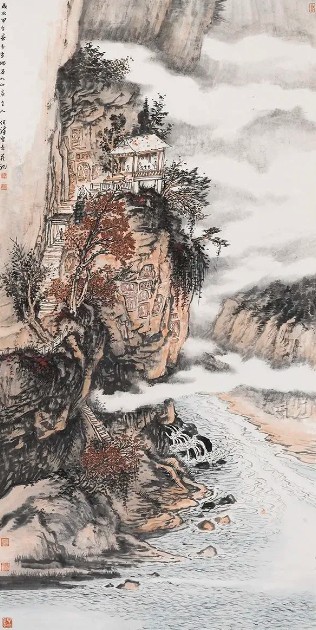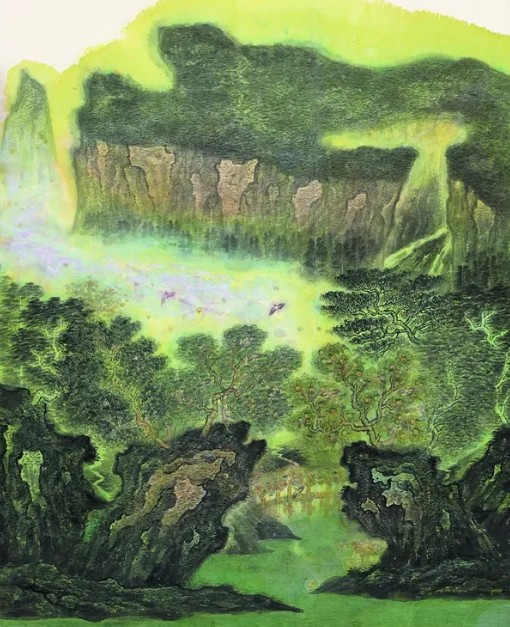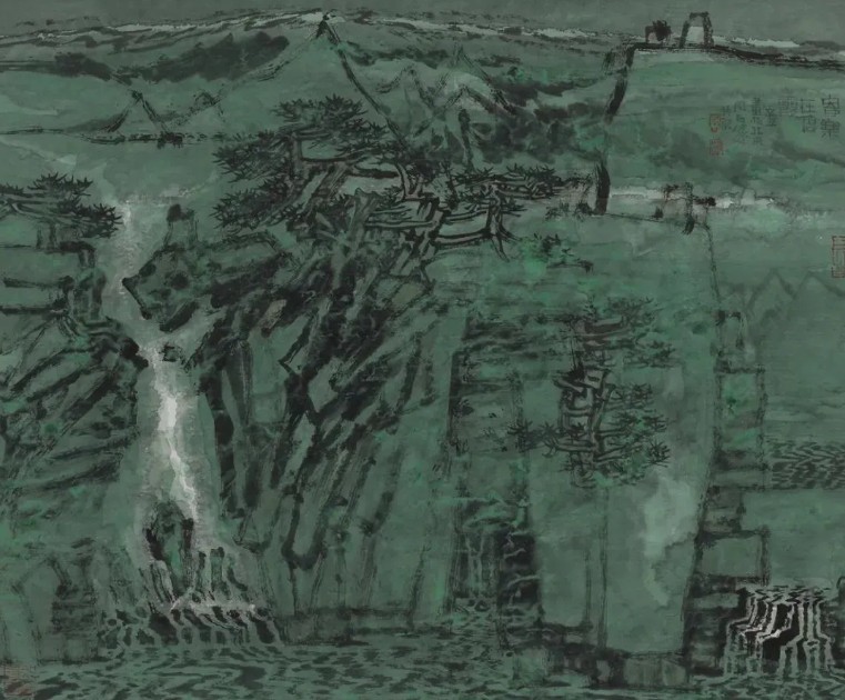 当代山水画家不仅“看”到不同于古代的山水,也“绘”出不同于古代的山水。图像时代的海量视觉资源、科技创新带来的新的工具材料、网络时代快速传递的知识信息等,不断陶冶我们的观念,洗刷我们的目光;在中华民族伟大复兴的新时代洋溢着昂扬向上的审美气候,让我们看到阳光绚烂的壮丽山水;在世界成为一个地球村的开放时代,中国画的笔墨、图式、意象的容量空前增大,山水空间更为广阔。另一方面,古代山水画积淀的澄怀味象的静观方式、以形媚道的创作指向、情景交融的审美意境、天人合一的自然理想、游目流观的观察方法、以大观小的空间经营、气韵生动的美学神采等,通过现代情境下的写生、采风、深入生活、扎根人民的艺术实践,再生新的艺术生命,重塑万般山水图像。