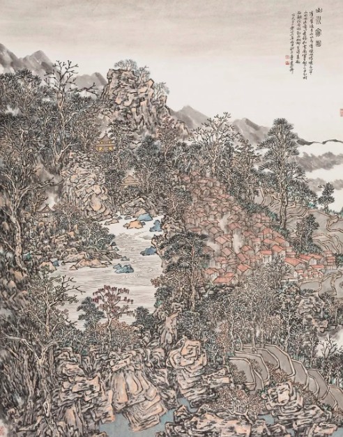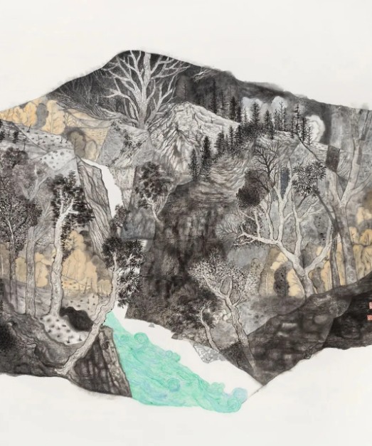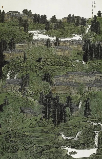 随着工业文明、城市文明的兴起,曾经可行可望可游可居的山水日益被城市的钢筋水泥包裹、阻隔,人类的行迹也愈演愈烈地干预着自然山水的生成秩序。山水不再只是人们远观近居的对象,同时也是人们生产、生活等实践活动的舞台。人类的过度干预,引起资源枯竭、大气污染等生态环境破损,被人力野蛮、粗暴形塑的山水,让现代人深深陷入远离自然的焦虑之中。中国山水画以天人合一的意境,指证着人与自然和谐共生、融合无间的家园。另一方面,进入新时代,人们又以“生态文明”的理念与实践,修复曾被践踏的自然;美丽乡村的现实景观、绿水青山的自然环境,焕发出万千山水的时代映像。