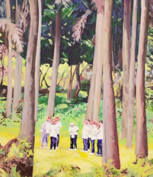 回忆是流动的,快照中残存的对时光认知记忆随着结构的扩充和兴趣点的迁移而转变,而强调现场和情景的还原,则是对原图像的刻意保留,这种对图像的执着体验以艺术家的视角呈现出自我经验的弥留,在描绘事物和复刻景象的同时,随机性和不确定性在图像的变异中被赋予特殊的路径,在画布之上充斥了迷离而又确定的意象,艺术家通过此种方式将拆解的误差生成了一个潜意识、梦幻和想象交叉重叠的乐园。
