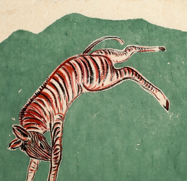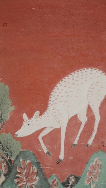 在选题上,他也有更多的尝试与处理。以往的蔬果被具有张力的动物形象所取代,即使画带有象征色彩的“福禄”,他也能巧妙地用形式来打破题材上所带来的束缚。