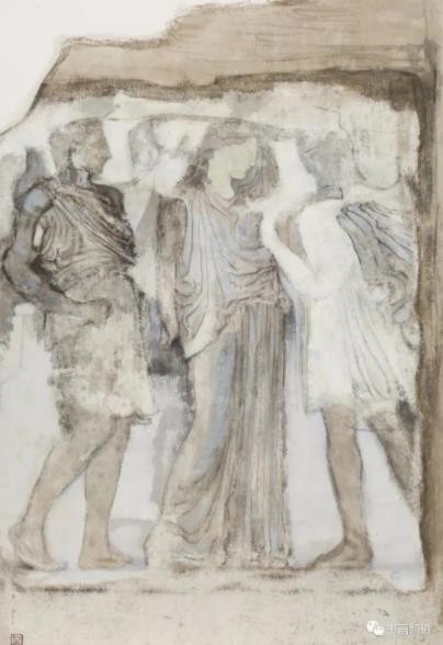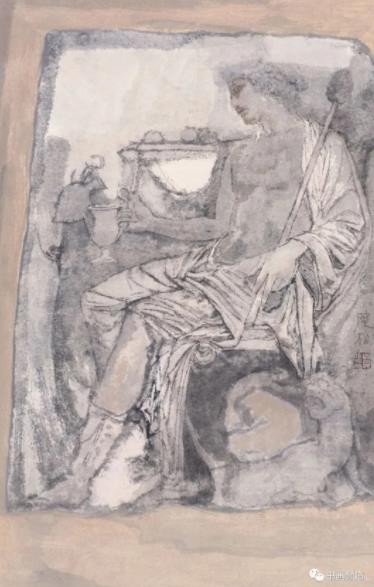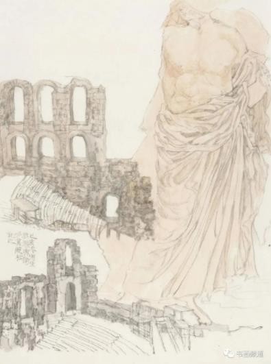 以水墨语言表现古希腊、古罗马艺术题材。纠之缘起,得益于敦煌艺术的滋养。以古希腊、古罗马的浮雕线描,参合中国传统法理心性,探索别样的视觉图式,以期呈现新的艺术形式语言。我先后多次往返于雅典,罗马,西西里岛,米兰等异邦采风写生,虽倍尝艰辛,然以得悟天下性情一理而倍感其乐融融。
