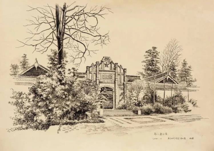 进入安仁镇,就好比走进了一座川西近代建筑的活态博物馆。雨果说:“建筑是石头史书。”看班勇的画,我们感到,这一部史书被重新还原到了纸上。这是由一张张画页组成的一部关于安仁古建筑、古街的系列史书。画中的一个个街口、一条条街道、一栋栋建筑、一座座庭院以及一块块青砖、一片片黑瓦、一道道门户、一扇扇窗户、一丝丝纹理,一斑斑污渍以及风雨、虫噬留下的点点痕迹,既是空间中的物质再现,又是以绘画语言为媒的时间符号,它们与安仁古镇一样,既承载了川西的记忆,又透露着中国近代史的折光。更重要的是,它们因写生而获得了充分的具身性和在场感,其中饱贮着画家的身体记忆和对时间流变的感知,这与安仁古镇的历史方位形成对应,生动的表现出它上承古时、下接今世、继续作用于川西今日生活的文脉。