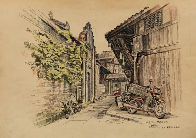 天津十年的古建筑写生,对班勇来说,也是十年专业磨砺之路,他由此积累了丰富的建筑艺术知识、建筑构形素材和建筑外观表现经验。在接下来的几年里,他受到广东、四川、厦门等多地业主邀约,参与了许多建筑项目的外观设计和手绘效果图制作,在该行业发生了广泛影响。趁此时机,班勇同时辗转各地,足至大半个中国。在其所到之处,写生和创作了大量记录各地民居、古建筑和反映各地风土人情的画作。国内的历史文化名城和特色古镇,是其重要的游历之地。2013年,当他行至川西平原,来到四川省大邑县安仁镇,目睹到这里的清末与民国风味融成的城镇与建筑遗存时,又一次欲罢不能了。他做出了人生中第二个驻留选择,决定在安仁客居下来。从那时起,他再度将写生古城、古街、古建筑与古风作为自己的生活内容。到如今,又已逼近九个年头了。