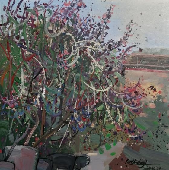 语言是苍白的,还是请诸君在无拘的线条中、在灵动的构图中、在自由的笔触中、在翻飞的色块中、在微妙与鲜明的色彩中、在平实淡远的意境中,领略画家彭烈洪“新当代”的艺术之美吧!