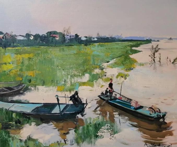 近年,彭烈洪先生在风景画创作上更加成熟,他不拘一格地广泛吸收各国古今艺术的优点,融入到自己“新当代”油画探索之中:《鹅洲春潮》《大凉山的阳光》让我们看到了吴冠中先生将西方抽象形式与中国传统意向之美融合的南方美景;《天上的马群》《村里的水库》让我们看到了天地一色、空灵澄澈、意蕴无穷的幽远之境;《溪山》《六和塔》《清迈阳光01》让我们看到了高山瀑布、云石小泉、浓荫古刹的线条与水墨之韵;《清迈阳光03》《清迈阳光04》让我们看到了印象派鲜亮缤纷的光与色;《花瑶云雾》让我们看到了透纳水彩的斑斓、迷蒙与透亮;《崂山》《崂山渔村02》让我们看到了塞尚《圣维克多山》的坚实与稳定;《一山藏九舍》让我们看到了纳比派维亚尔宁静、丰富灰度,《金紫仙》让我们看到了波纳尔夸张、迷人的色彩旋律;《河那边》让我们看到了德国表现主义的浓烈、不羁与狂放,《清迈阳光02》让我们看到了唐卡艺术般的炽热、纯真与虔诚。这些跨越中西、打破地理与文化界限、看似无法调和或统一的元素均在彭烈洪的绘画中融为一体,自然呈现,共同谱写出中华“新当代”的和美乐章。