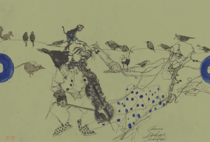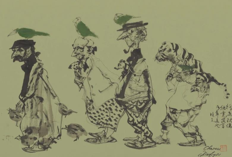 所以,无论是圈内还是圈外,线上还是线下,大家对于我的绘画风格有个一致的观点,即典型的上海味道,是的,我自己也是这么认为。老上海是座风情万种的城市,由于几十年的浸润,我会多少有些婉约,但同时不误宏大叙事,照样也具有敢问天下的历史担当,不是吗?党的一大会址摆在那里的不是假的。也习惯用法国人普鲁斯特巜追忆似水年华》之意识流的写作方式去作画,当然还会有些幽默、灵动,那是上海本地产的,或许是自身就有的,也许曾经被贺友直和程十发启蒙过?说不定的。同时一定会夾杂着上海老弄堂里散发出来的市井气息,狡狡黠黠的,让外省人看了不怎么省心。当年我穿穿梭梭像一个自由撰稿人,混迹于连环画,外国文学小说插图领域,漫画则一直是个人偏爱,对中外漫画家如数家珍,包括郑辛遥。我是江湖虽杂但涉足甚广,自然历练有加,得心应手。所以直到今天,会盎然之趣味依然不减,趁贺岁本命虎年之际,举办这个纸本小展。想当年可以从莫泊桑的巜一个儿子》一直追到阿瑟赫利的巜根》,甚至在五六十岁的时候,还念念不忘拣起美国作家菲茨�杰拉德的名著《了不起的盖茨比》,通过连环画的方式找到上海新民晚报,在它的副刊上进行连载,和大众分享之。可以这么说,我是个在大作品和小作品之间来回走动的杂家,大画小画互补,完全没有井水不犯河水这一说。