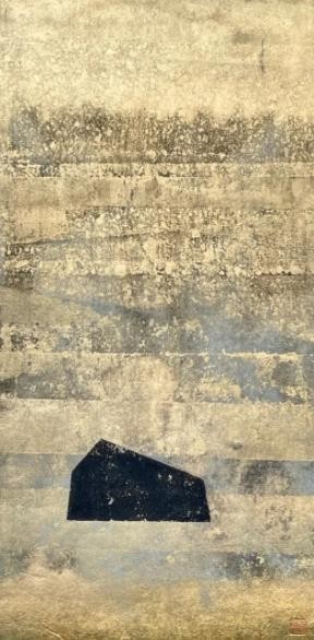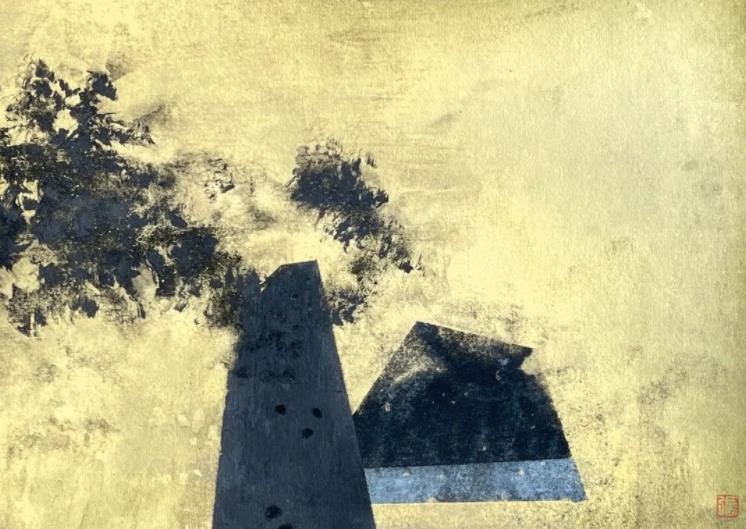 城市的繁华与喧闹,常让我自己以为在梦境般的沉迷与昏睡之中,当繁华消失散尽,城市对我来说是一场金色的梦,这个梦很美,美的不真实、美的很虚幻、美的让我不知不觉,不知道自己在梦里又或者现实之中。在《繁华尽是梦》系列的金色与建筑物构成的基础上我加重、加深了金色颜料的比例感,让画面以金色为全部构成效果,这种金色的层次感让我更能深刻表现,并组成我一直想诉说的梦境与城市的繁华那种虚幻妄想又带真实刻划的画面语言。