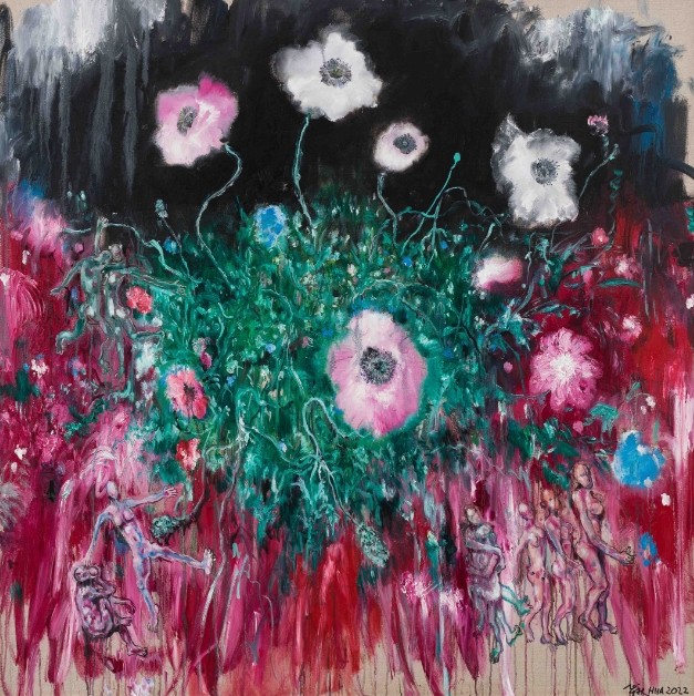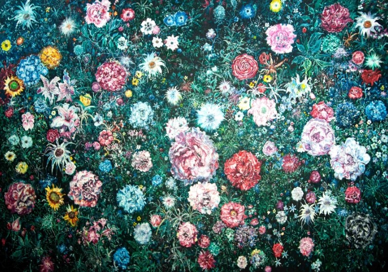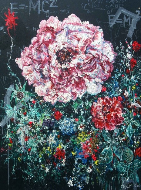 从猩猩的“经过”到花朵的“存在”,华庆的艺术哲学在此完成升华。猩猩代表了生命于历史长河中的跋涉与蜕变,而花朵则凝固了生命于此刻的灿烂与沉思。花朵的“世界”虽小,却如一滴水折射大海,在方寸之间囊括了存在的喜悦与悲凉、荣光与隐痛。这盛放,是艺术家穿透浮华表象后对生命本质的深情凝视——纵然深知世事如露亦如电,依然选择以最明艳的姿态拥抱存在本身,那花瓣的每一次颤动,都是不屈的宣言。